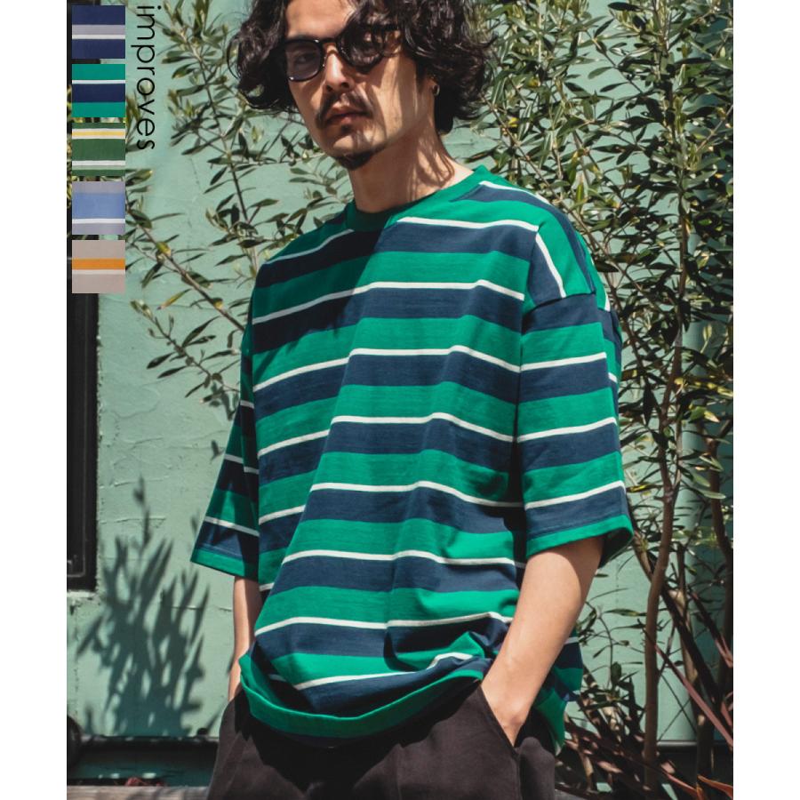 レトロチック ボーダー 半袖tシャツ メンズ マルチボーダー ビッグシルエット オーバーサイズ カットソー ボーダー 古着mix スケーター ストリート 韓国 Improves インプローブス 通販 Yahoo ショッピング